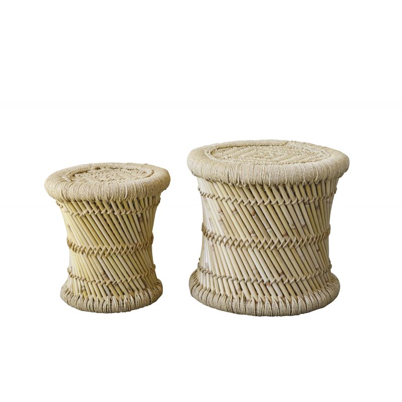 Les matières naturelles telles que le rotin, l’osier et le bambou sont indispensables au style ethnique nature. Tressé, le bambou s’adapte parfaitement au petit mobilier tels que des tabourets ou des tables d’appoints. Il peut également servir de séparation entre deux espaces sous forme de paravent ou être utilisé dans des luminaires décoratifs. Côté déco, vous pourrez ajouter de jolies lanternes en rotin ainsi que des paniers tressés de différentes tailles. Idéal pour y exposer de belles plantes vertes. Enfin, pour la déco de vos murs, optez pour un pêle-mêle de miroirs soleil en bambou et des paniers plats en rotin. Un effet whaou garanti !